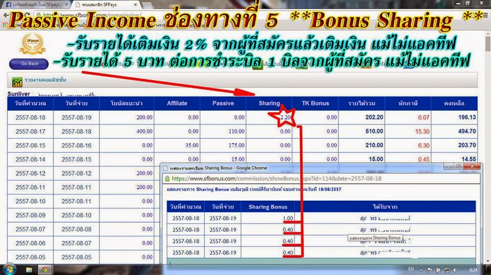 5.) ������ͧ�ҧ���� 5 ������� Passive Income " Bonus Sharing " ����Դ�ҡ���ʹ� ��Ѥ��͡���ͤ�տ ����ö���к� ���!!! (��յ�ʹ�վ) "�Ѻ���������ͼ��ʹ㨷ء���駷������Թ��Ͷ�� �Ѻ�ѹ��� 2% ��� �ء���駷����к�� �Ѻ 5 �ҷ��ͺ�� "